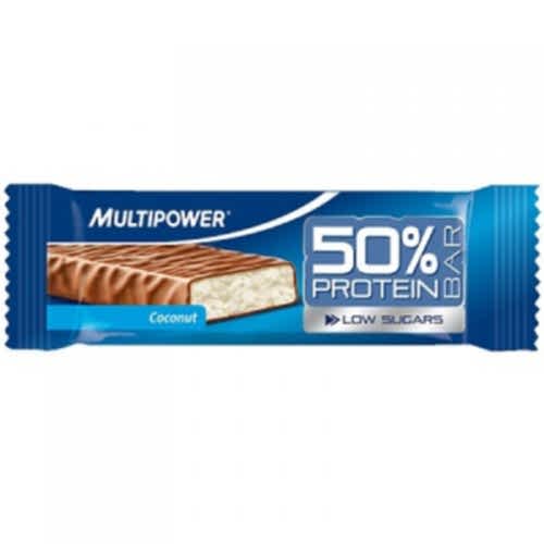 Multipower %50 Protein Bar, diğer ürünlere göre içerik olarak daha zengindir. Kazein, kurutulmuş yumurta albuminleri ve süt proteini izolesi içeren bu ürün 27 gr’lık protein içeriği ve lezzetiyle tercih edilen bir protein takviyesidir. Her servisinde 27 gr protein içeren bu ürün 210 kalori gibi oldukça düşük bir kaloriye sahiptir buda diyet,definasyon döneminde olan sporcular için idealdir.